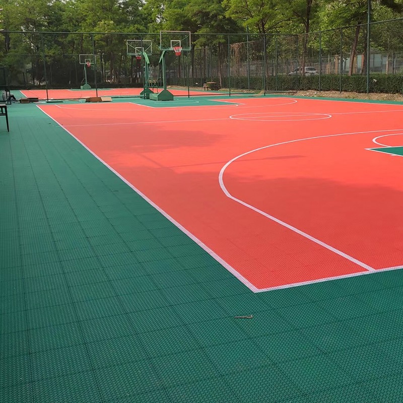 悬浮式拼装地板采用成熟的高强度聚丙烯环保材料,有效解决地板热胀冷缩问题的同时还具有稳定的表面摩擦,抗紫外线添加剂被加入到每一块地板中,能够保障地板在长期受日光照射中不褪色,悬浮式的结构设计加上坚固的加强型支撑脚结构,创造卓越的垂直的减震效果,防滑的表面可有效防止运动损伤,良好的球回弹性能和球速保证了地板卓越的运动性能,它可用于铺装理想的高性能篮球场、网球场、五人足球场、轮滑球场、乒乓球场以及排球、羽毛球等多功能球场。